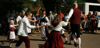 Heidjerfest bekannt sind, haben ein kleines Floß gebaut,